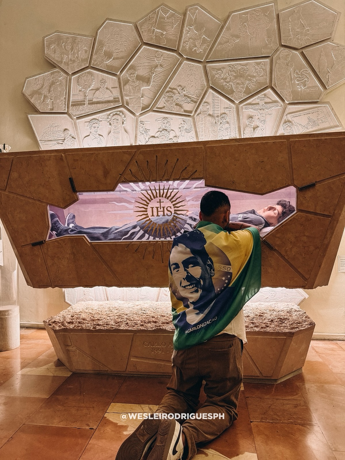 Na audiência jubilar deste sábado, o papa chegou a segurar uma bandeira do Brasil com o rosto de Carlo Acutis, confeccionada especialmente pelo grupo para esta ocasião. Os jovens também peregrinaram a Assis, onde rezaram diante do túmulo do Beato Carlo.