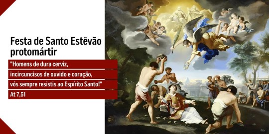 “HOMENS DE DURA CERVIZ, INCIRCUNCISOS DE OUVIDO E CORAÇÃO, VÓS SEMPRE RESISTIS AO ESPÍRITO SANTO!” (At 7,51) Na Liturgia desta quinta-feira a Igreja celebra a Festa de Santo Estêvão, Diácono, protomártir. Estêvão é o primeiro dos mártires de Cristo, e um dos sete Diáconos que os Apóstolos escol...