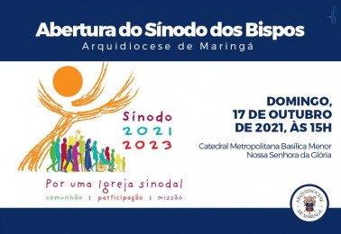 No próximo domingo, 17 de outubro, o Arcebispo de Maringá, Dom Frei Severino Clasen, irá presidir a Santa Missa de abertura da etapa arquidiocesana do Sínodo dos Bispos 2021/23, sobre sinodalidade, cujo tema é “Por uma Igreja sinodal: comunhão, participação e missão”. A celebração terá início às 15h...