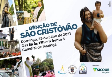 Dia 25 de julho é festejado São Cristóvão, protetor dos motoristas, caminhoneiros, taxistas e de todos os transportadores. Na data, a Catedral de Maringá irá realizar a tradicional bênção dos veículos das 8h às 17h, em frente à igreja.Motoristas, motociclistas, ciclistas, são convidados a levarem se...