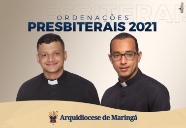 Dois diáconos serão ordenados presbíteros na Arquidiocese de Maringá em 2021. A Santa Missa de ordenação de Edivaldo Costa da Conceição (32) será celebrada dia 31 de julho, às 19h30, na igreja matriz da paróquia Jesus Bom Pastor, em Paiçandu. Anderson Dias Gumieri (29) será ordenado dia 07 de agosto...