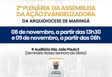 A Arquidiocese de Maringá segue em caminhada sinodal, preparando-se para a Segunda Plenária da Assembleia Arquidiocesana, que acontecerá neste final de semana, nos dias 8 e 9 de novembro de 2025. Arraste ao lado para ler a matéria do padre Marcos André, coordenador da Ação Evangelizadora, sobre a As...