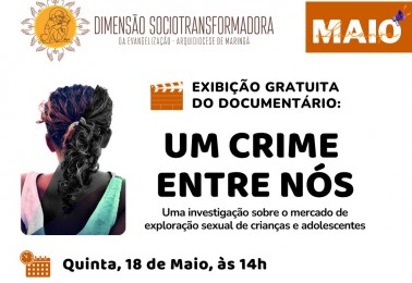 Quinta-feira dia 18 de maio, às 14 horas, a Dimensão Sociotransformadora da Evangelização da Arquidiocese de Maringá, promoverá a exibição de uma sessão gratuita, aberta ao público, do documentário “Um crime entre nós”, no Cineflix do Shopping Maringá Park.Lançado em 18 maio de 2020 o documentário é...