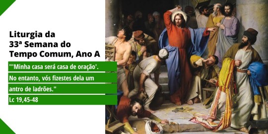 O SER HUMANO É TEMPLO, ISTO É, SACRAMENTO DA PRESENÇA DE DEUS Na Liturgia desta sexta-feira, 33ª Semana do Tempo Comum, na 1ª Leitura (1Mc 4,36-37.52-59), vemos que Jerusalém e o Templo são símbolos da libertação do povo, sacramento da presença de Deus. A purificação do Templo é feita...