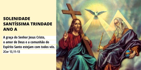 Solenidade da Santíssima Trindade: “Glória ao Pai, ao Filho e ao Espírito Santo”. Na Liturgia deste Domingo, Solenidade da Santíssima Trindade, veremos, na 1ª Leitura(Ex 34,4b-6.8-9), na 2ª Leitura (2Cor 13,11-13) e no Evangelho (Jo 3,16-18), que celebrar o mistério da Santíssima Trindade ...