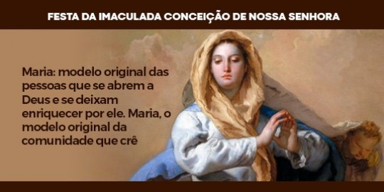 Maria: modelo original das pessoas que se abrem a Deus e se deixam enriquecer por ele. Maria, o modelo original da comunidade que crê A Festa da Imaculada Conceição de Nossa Senhora nos lembra a palavra da Escritura segundo a qual Maria foi sempre a Virgem cheia de graça. E pelos méritos de Cristo ...
