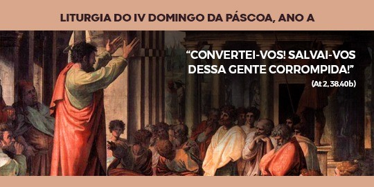 “Convertei-vos! Salvai-vos dessa gente corrompida!” (At 2, 38.40b) Na Liturgia deste IV Domingo da Páscoa, veremos, na 1a Leitura (At 2, 14a. 36-41), que o discurso de Pedro faz com que as pessoas tomem consciência do seu próprio pecado. O que fazer diante disso? Pedro convida a multidão a abraçar a...