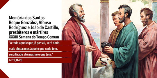 Reflexão litúrgica: Quarta-feira, 19/11/2025, XXXIII Semana do Tempo Comum, Memória dos Santos Roque González, Afonso Rodríguez e João de Castilho, presbíteros e mártires