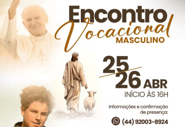 Nos dias 25 e 26 de abril, o Seminário Arquidiocesano Nossa Senhora da Glória, em Maringá, realizará mais uma edição do Encontro Vocacional Masculino, voltado a jovens a partir dos 15 anos que desejam escutar com mais profundidade o chamado de Deus. O encontro é um tempo de graça e discern...