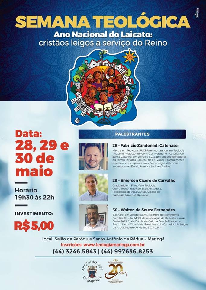 Em 2018, a Semana Teológica promovida pela Escola de Teologia para Cristãos Leigos da Arquidiocese de Maringá juntamente com o Conselho Arquidiocesano de Leigos terá como tema “Ano Nacional do Laicato: Cristãos Leigos a Serviço do Reino”.