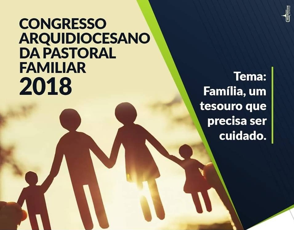 Nos dias 10 e 11 de novembro de 2018 a Pastoral Familiar da Arquidiocese de Maringá irá promover o Congresso Arquidiocesano com o tema: “Família, um tesouro que precisa ser cuidado”.