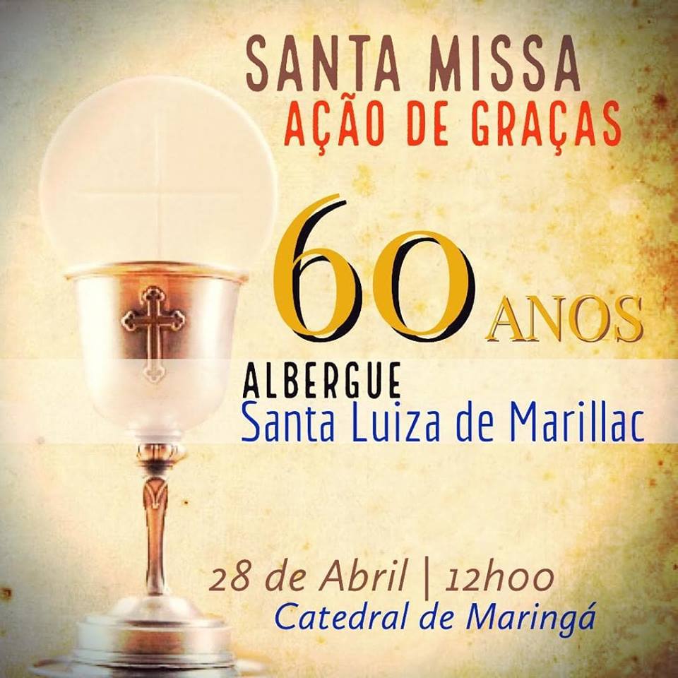 No próximo domingo (28) o Arcebispo de Maringá, Dom Anuar Battisti, irá presidir Santa Missa em ação de graças pelos 60 anos de fundação do Albergue Santa Luíza de Marillac. A Santa Missa será às 12h na Catedral Basílica Menor Nossa Senhora da Glória, com a presença dos acolhidos do albergue e do Frei Francisco, Guardião Geral da Associação e Fraternidade São Francisco de Assis na Providência de Deus, responsável pela gestão do Albergue.