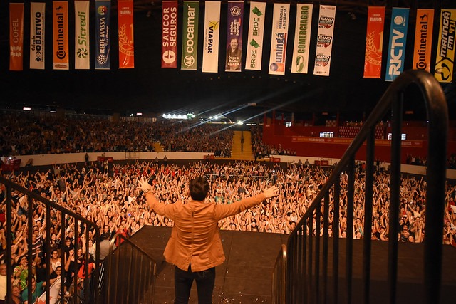 Com um público de mais de 10 mil pessoas, o cantor católico Thiago Brado abriu a Expoingá 2019 com canções católicas que fazem sucesso na internet. O músico paranaense é considerado um fenômeno nas redes sociais e fez o público se emocionar na arena coberta do Parque de Exposições de Maringá na noite dessa quinta-feira (09).