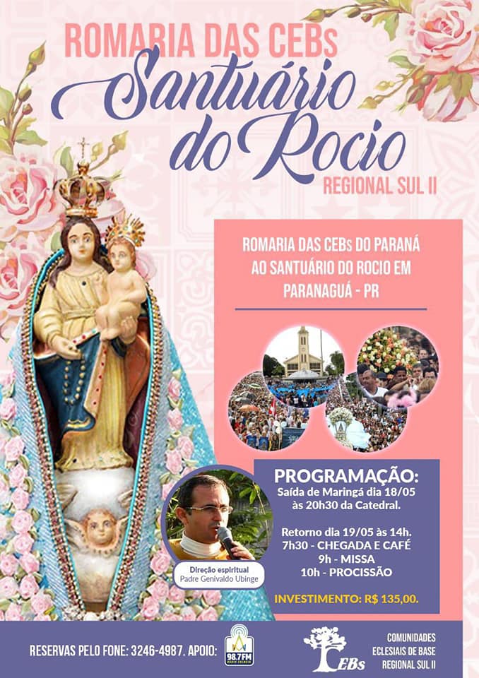 A primeira Romaria das CEBs ao Santuário Estadual de Nossa Senhora do Rocio, Padroeira do Paraná, na cidade de Paranaguá, será no dia 19 de maio de 2019. A Arquidiocese de Maringá estará presente com 56 romeiros.