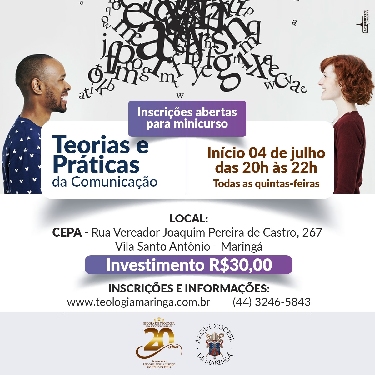A Arquidiocese de Maringá, por meio da Escola de Teologia para Cristãos Leigos e da Pastoral da Comunicação (Pascom), irá promover um minicurso sobre “Teorias e Práticas da Comunicação”, com início dia 04 de julho.