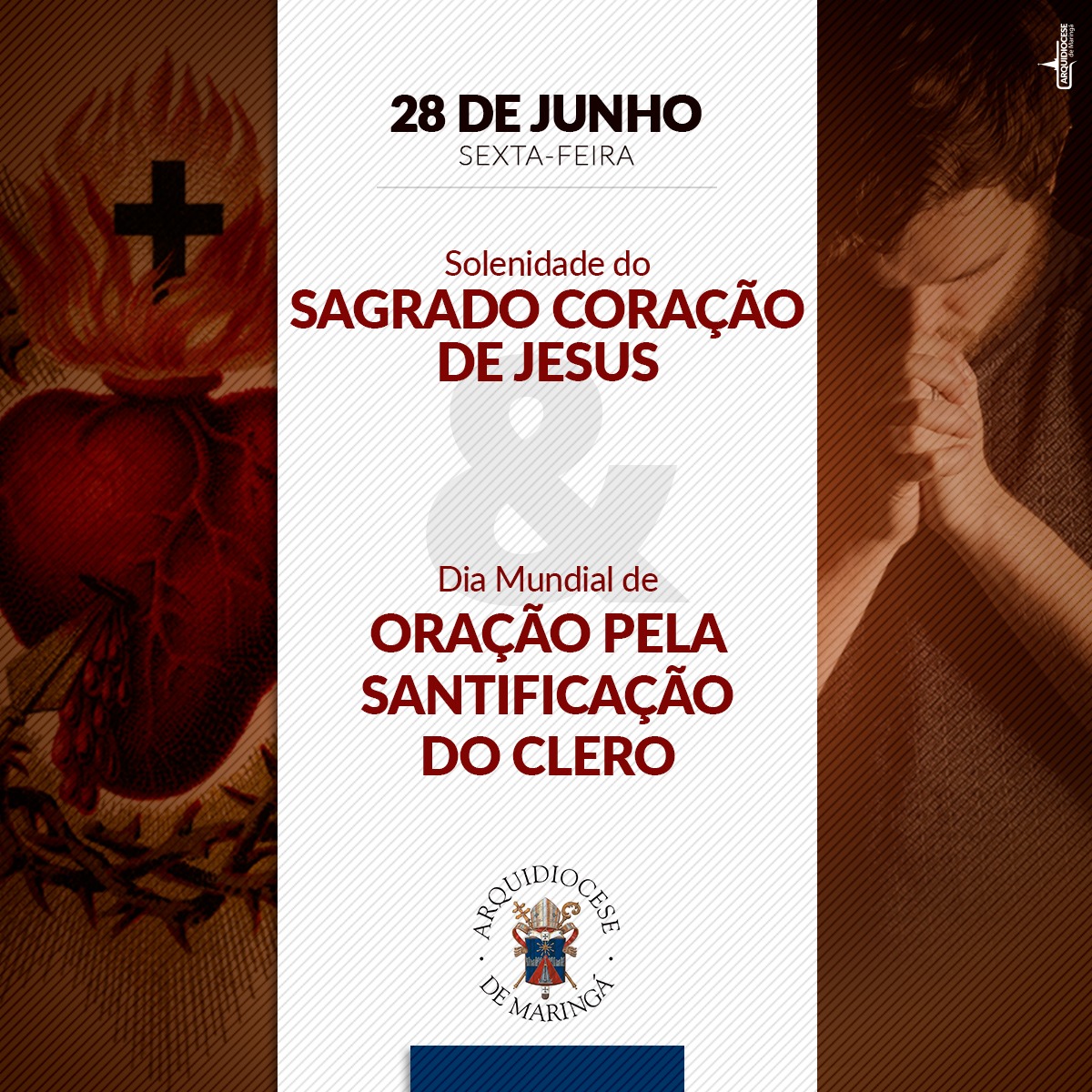Sexta-feira, 28 de junho, a Igreja celebra a Solenidade do Sagrado Coração de Jesus e o Dia Mundial de Oração pela santificação do Clero. O Arcebispo de Maringá, Dom Anuar Battisti irá presidir a Santa Missa na paróquia Sagrado Coração de Jesus, às 9h, em Nova Esperança.