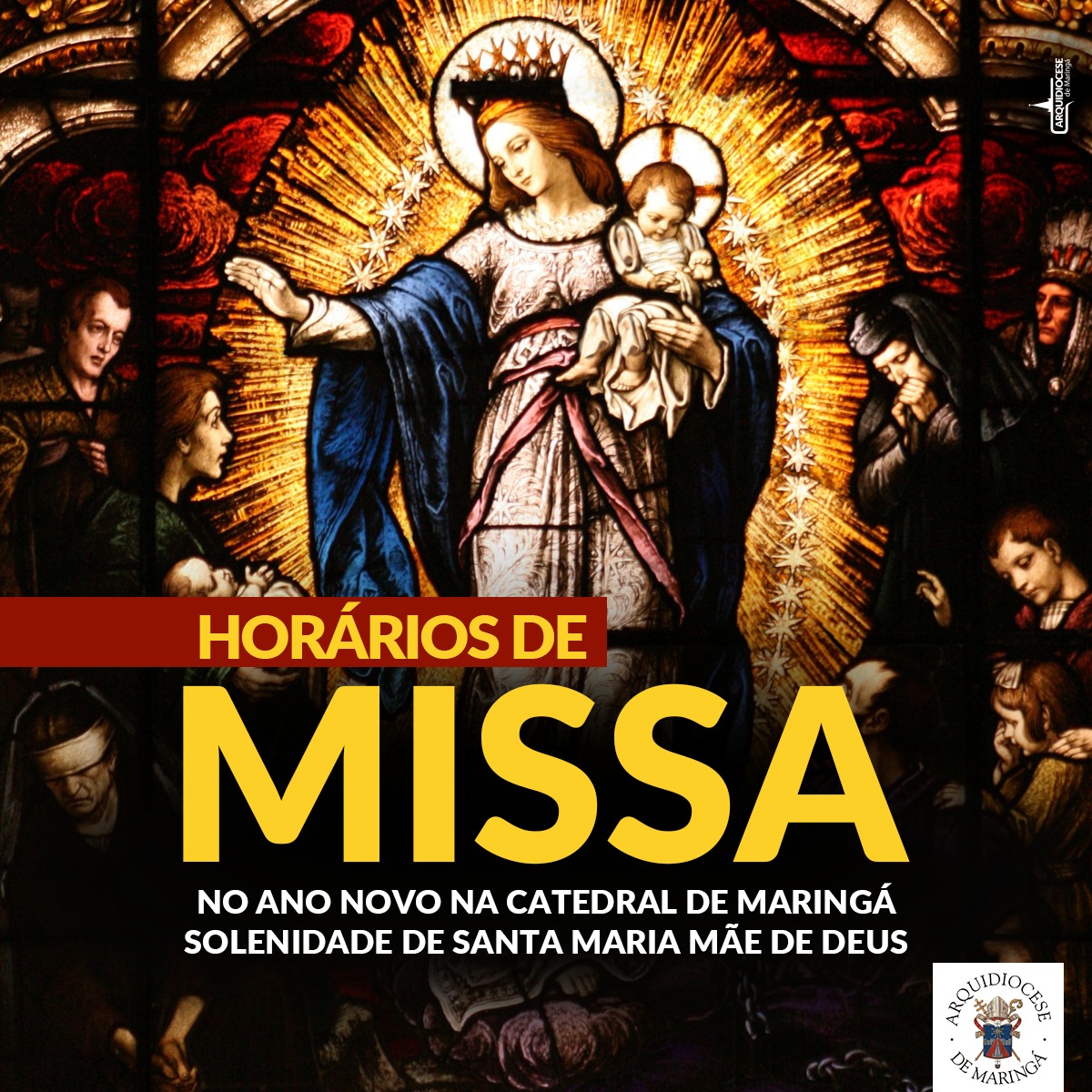 As Missas no Ano Novo (Solenidade de Santa Maria Mãe de Deus) na Catedral de Maringá serão celebradas terça-feira (31) às 20h e quarta-feira (01 de janeiro de 2020) às 9h30 e 18h30.