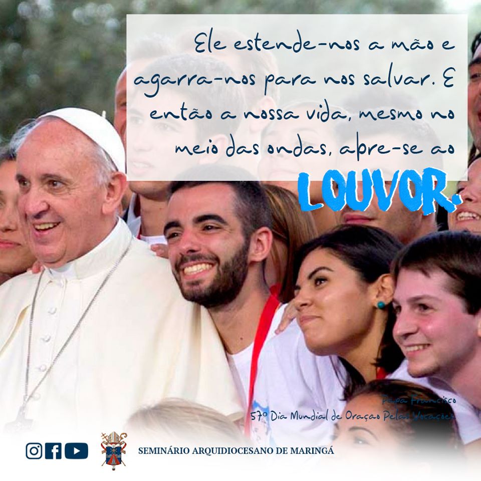 E então a nossa vida, mesmo no meio das ondas, abre-se ao louvor. Esta é a última palavra da vocação, e pretende ser também o convite a cultivar a atitude interior de Maria Santíssima: agradecida pelo olhar que Deus pousou sobre Ela, superando na fé medos e perturbações, abraçando com coragem a vocação, Ela fez da sua vida um cântico eterno de louvor ao Senhor.