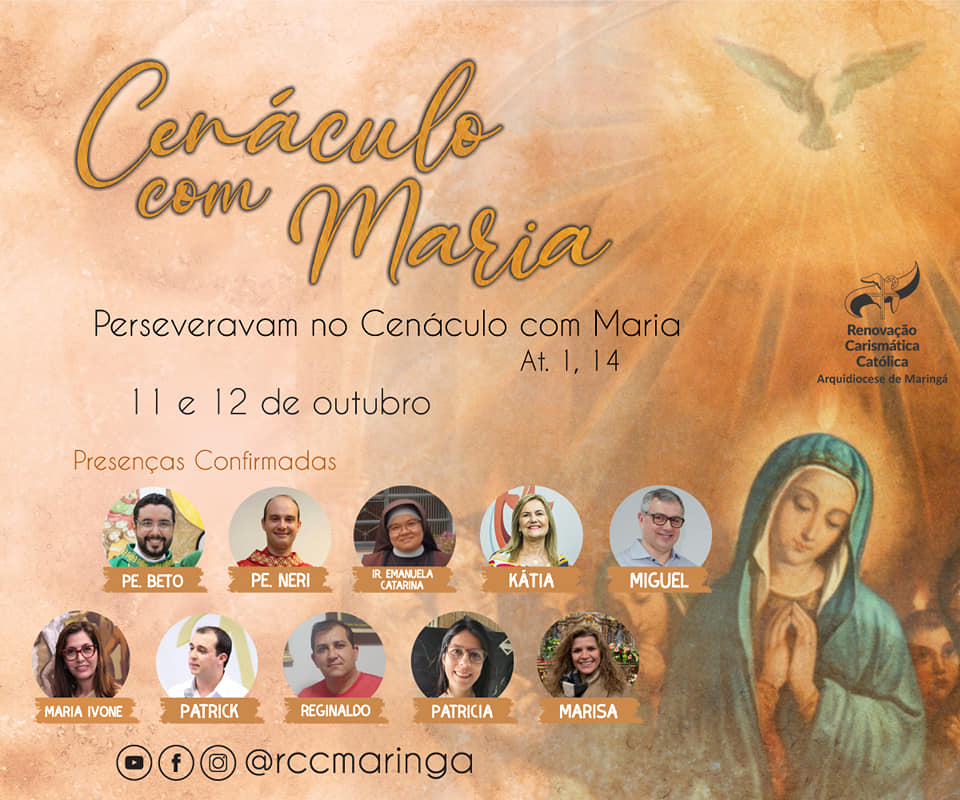 Este ano, o Cenáculo com Maria em Maringá será realizado on-line, nos dias 11 e 12 de outubro, com o tema “Perseveravam no Cenáculo com Maria”.