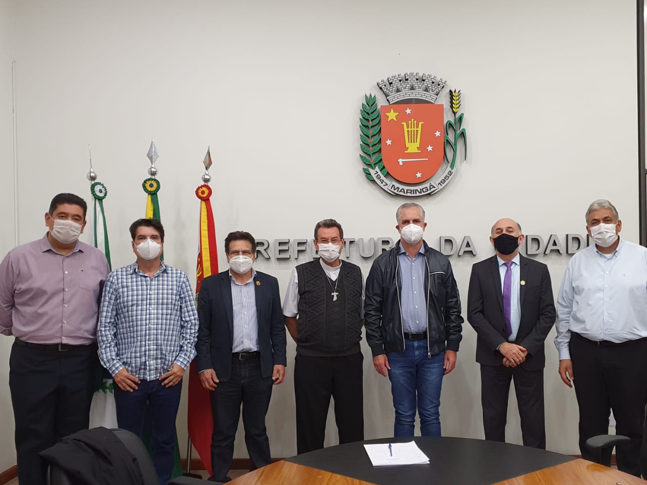 Também participaram da reunião na prefeitura o pároco da Catedral, padre Dirceu Alves do Nascimento, o diácono Marcus Geandré Nakano Ramiro, o vice-prefeito de Maringá, Edson Scabora, o secretário de Inovação e Desenvolvimento Econômico, Francisco Favoto e o secretário de Obras Públicas, Albari Alves de Medeiros.
