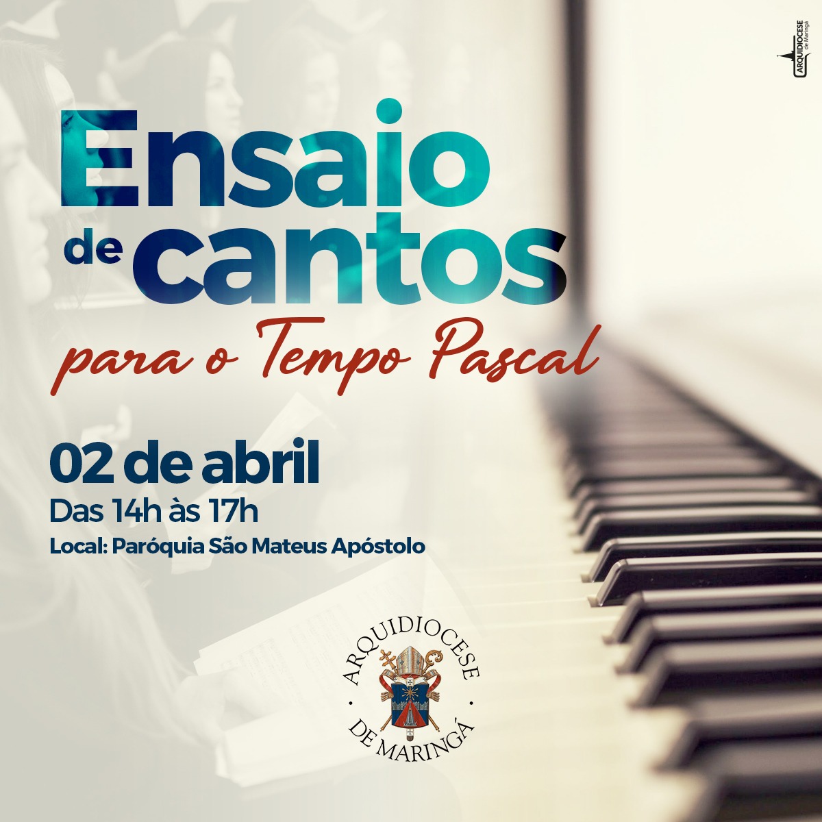 Por isso, no próximo sábado, dia 02 de abril, haverá formação e ensaio de cantos do Tempo Pascal, sob a condução do diácono Marcus Geandré. O encontro será realizado na igreja matriz da paróquia São Mateus Apóstolo, em Maringá (Rua Rio das Várzeas, 950), das 14h às 17h. Não há custos ou necessidade de inscrição.