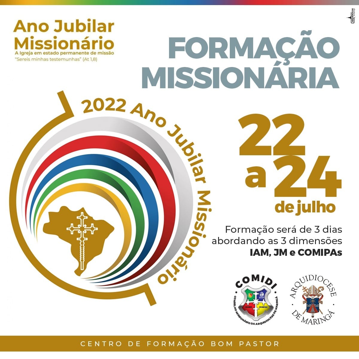 O Conselho Missionário Diocesano promoverá, de 22 a 24 de julho, Formação Missionária com o tema “A Igreja em estado permanente de missão” e o lema “Sereis minhas testemunhas” (At 1,8). Será no Centro de Formação Bom Pastor, anexo ao Seminário Arquidiocesano Nossa Senhora da Glória, em Maringá.