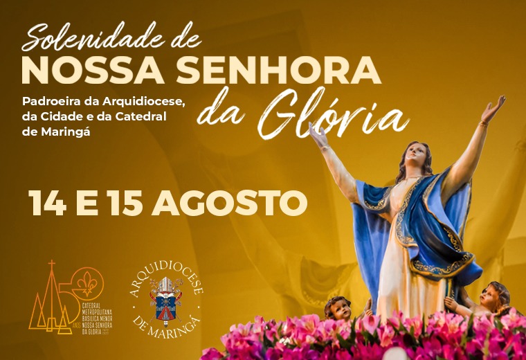 Dia 15 de Agosto, a Arquidiocese de Maringá celebra Nossa Senhora da Glória, também padroeira da cidade e da Catedral. A solene celebração presidida pelo Arcebispo Metropolitano, Dom Frei Severino Clasen, será realizada na praça da igreja, às 16h. Antes, os fiéis vão seguir em procissão a partir da praça Deputado Renato Celidônio (em frente aos Correios), até o altar montado atrás da basílica, onde será celebrada a Missa campal.
