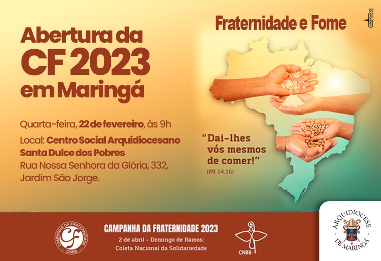 O evento terá a presença do Arcebispo de Maringá, Dom Frei Severino Clasen, de articuladores arquidiocesanos da CF 2023, representantes de entidades católicas e da sociedade civil que atuam no combate à fome, além de autoridades políticas.