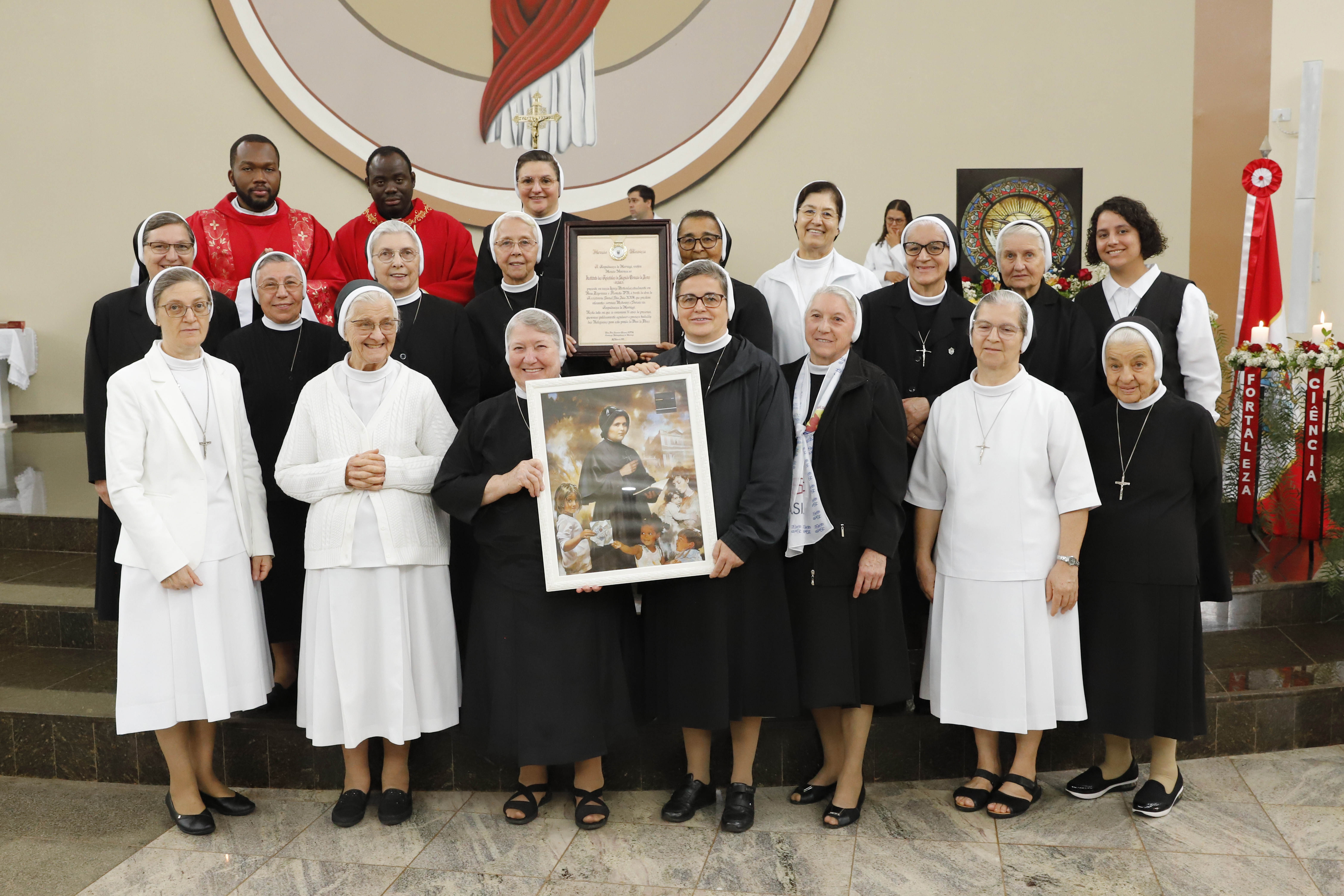 Na procissão de entrada foi acolhido o quadro da fundadora, a Bem Aventurada Clélia Merloni, que, fiel aos apelos da Igreja, na pessoa de suas filhas, vem transformando, impactando e inspirando a vida de milhares de pessoas nos locais onde atuam, no Brasil e no mundo. A bandeira do Instituto lembrou a presença na comunidade de Floresta, com destaque para o carisma do Sagrado Coração de Jesus na Obra de Assistência Social Papa João XXIII, com a proposta de acolher, respeitar, e valorizar cada criança, adolescente, suas famílias e comunidade.