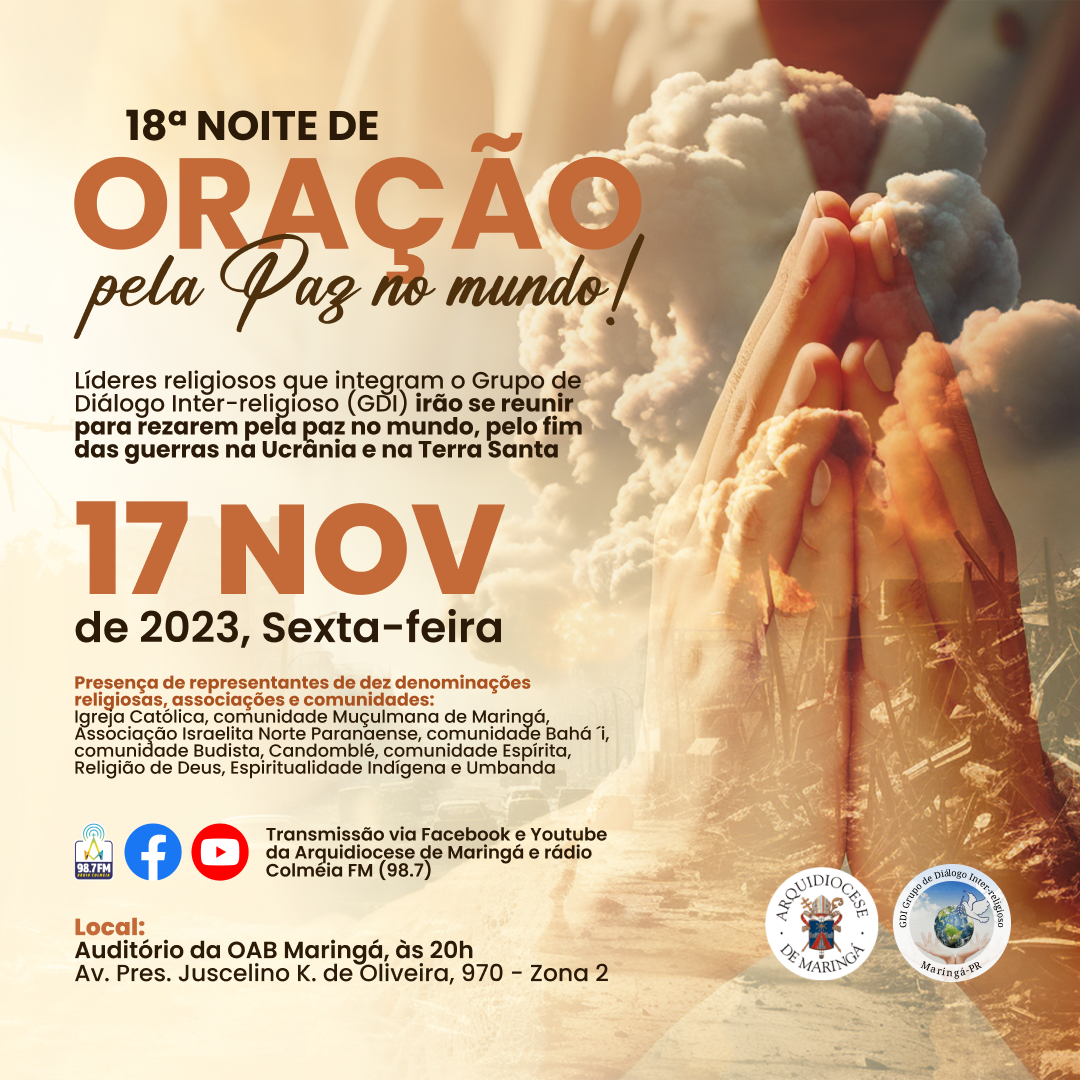 O ato Inter-religioso será realizado sexta-feira, 17 de novembro, às 20h no auditório da OAB Maringá.