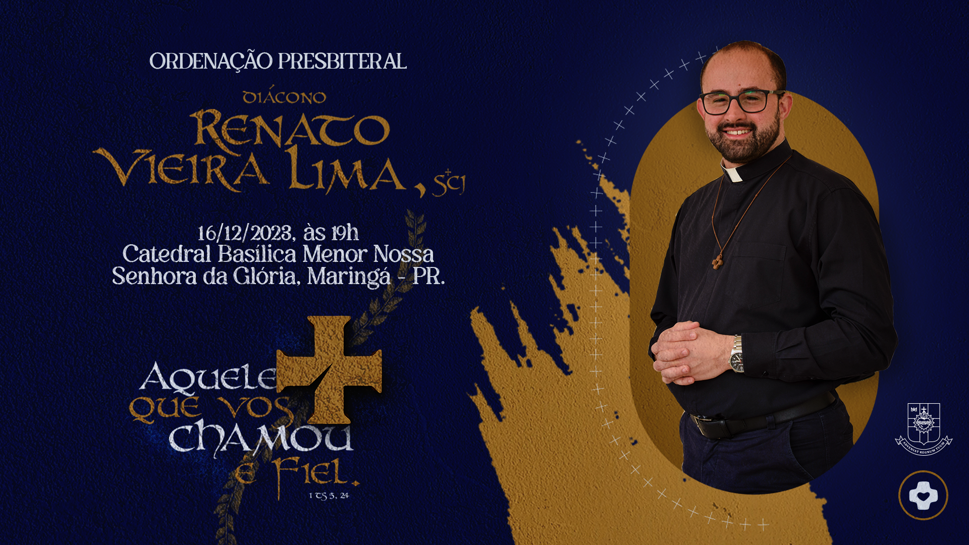 No dia 16 de dezembro, às 19h, o diácono Renato Vieira Lima, será ordenado presbítero na Catedral Basílica Menor Nossa Senhora da Glória, em Maringá.