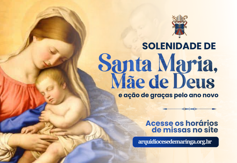 A Arquidiocese de Maringá comunica os horários de Missas da solenidade de Santa Maria, Mãe de Deus, em ação de graças pelo Ano Novo, em todas as paróquias dos 27 municípios que pertencem ao seu território.