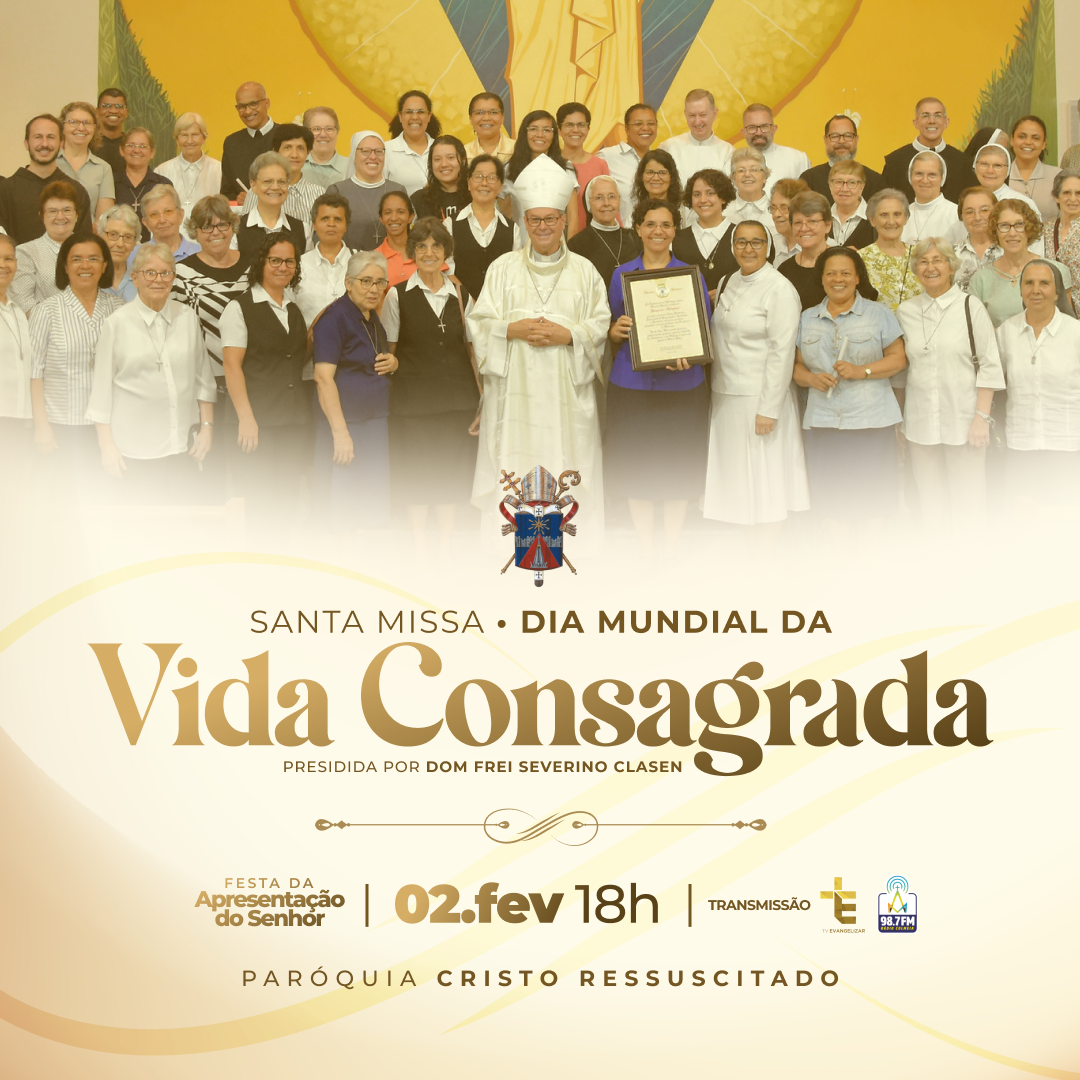 A celebração terá início às 18h, na igreja matriz da paróquia Cristo Ressuscitado. Com transmissão nacional pela TV Evangelizar e Rádio Colmeia Maringá (98,7 FM), a Missa contará com a presença de religiosas e religiosos das dezoito congregações presentes na Arquidiocese de Maringá.