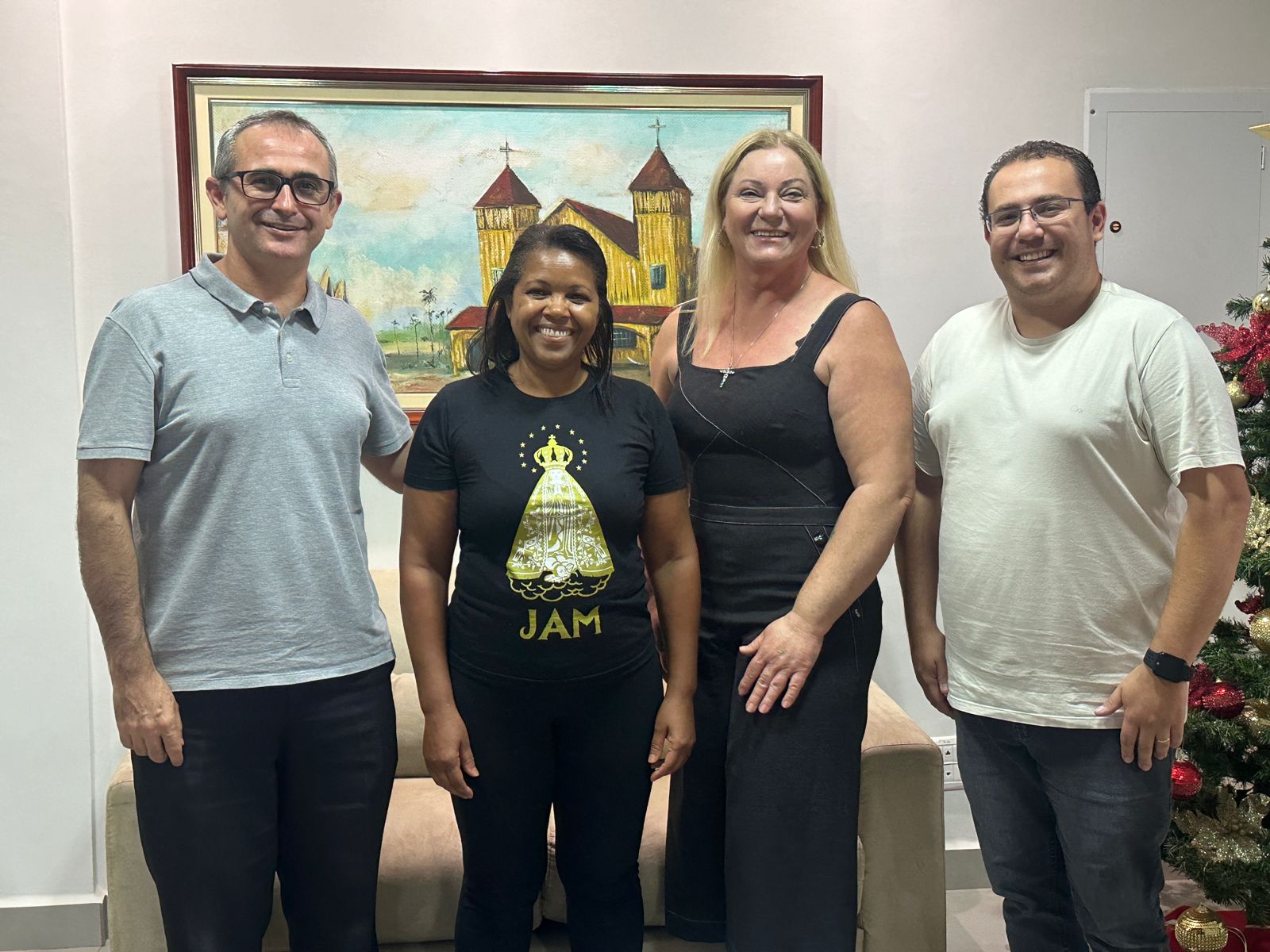 Presente na Cúria Metropolitana em reunião com a coordenação da Ação Evangelizadora da Arquidiocese, representada pelo Pe. Genivaldo Ubinge e, coordenadoras arquidiocesana e estadual da Pastoral da Criança, Zilda Ferreira e Veronica Valarini.