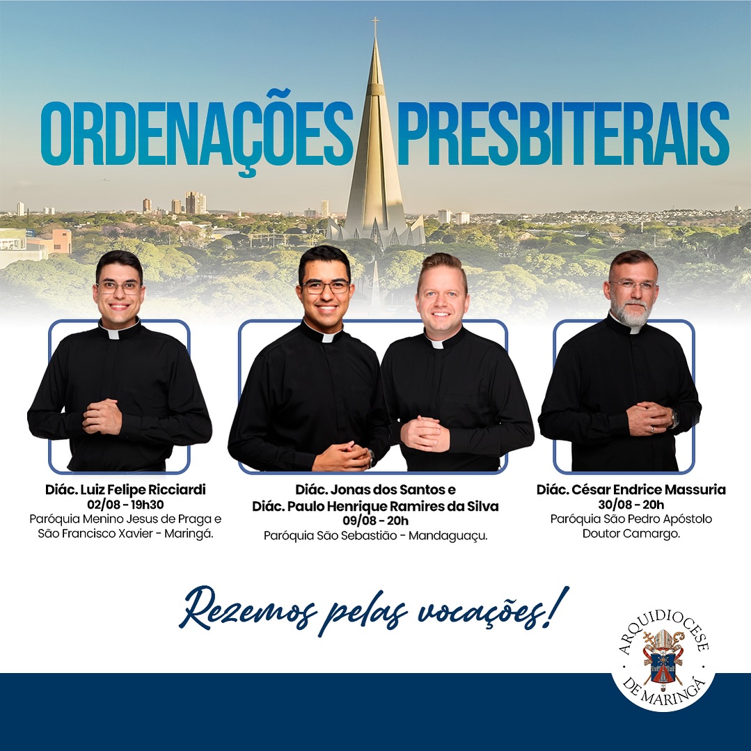 Com alegria, a Arquidiocese de Maringá comunica as datas das ordenações presbiterais para o ano de 2024.