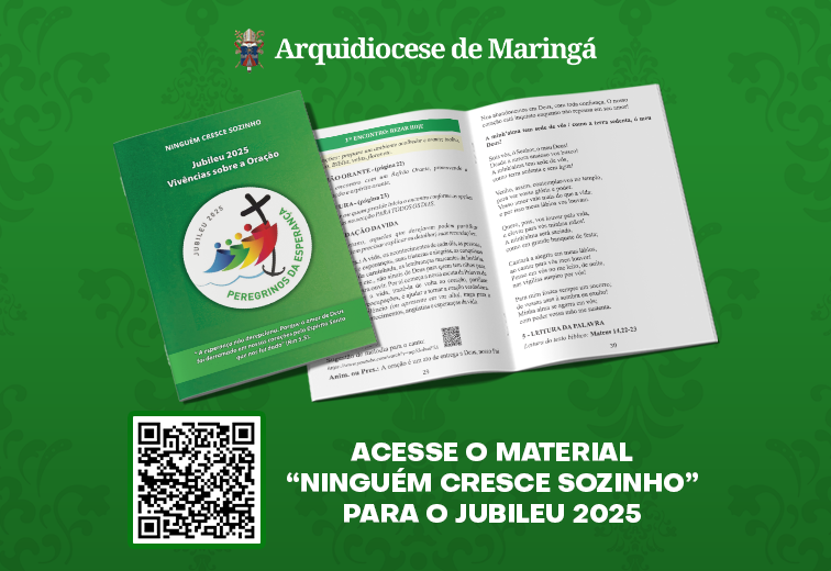 A assessoria dos Grupos de Reflexão preparou o material “Ninguém Cresce Sozinho, Peregrinos da Esperança”, para as vivências de oração que serão realizadas no mês de outubro e novembro, como preparação espiritual para o Jubileu do Nascimento de Nosso Senhor Jesus Cristo em 2025.