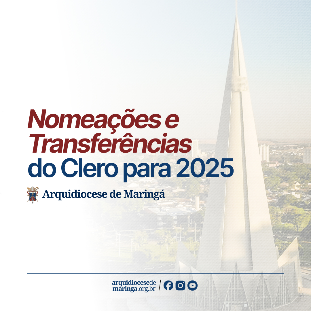 Após ouvir o Conselho Presbiteral, o Arcebispo Metropolitano de Maringá, Dom Frei Severino Clasen, OFM, comunica as seguintes transferências de padres na Arquidiocese de Maringá para o ano de 2025: