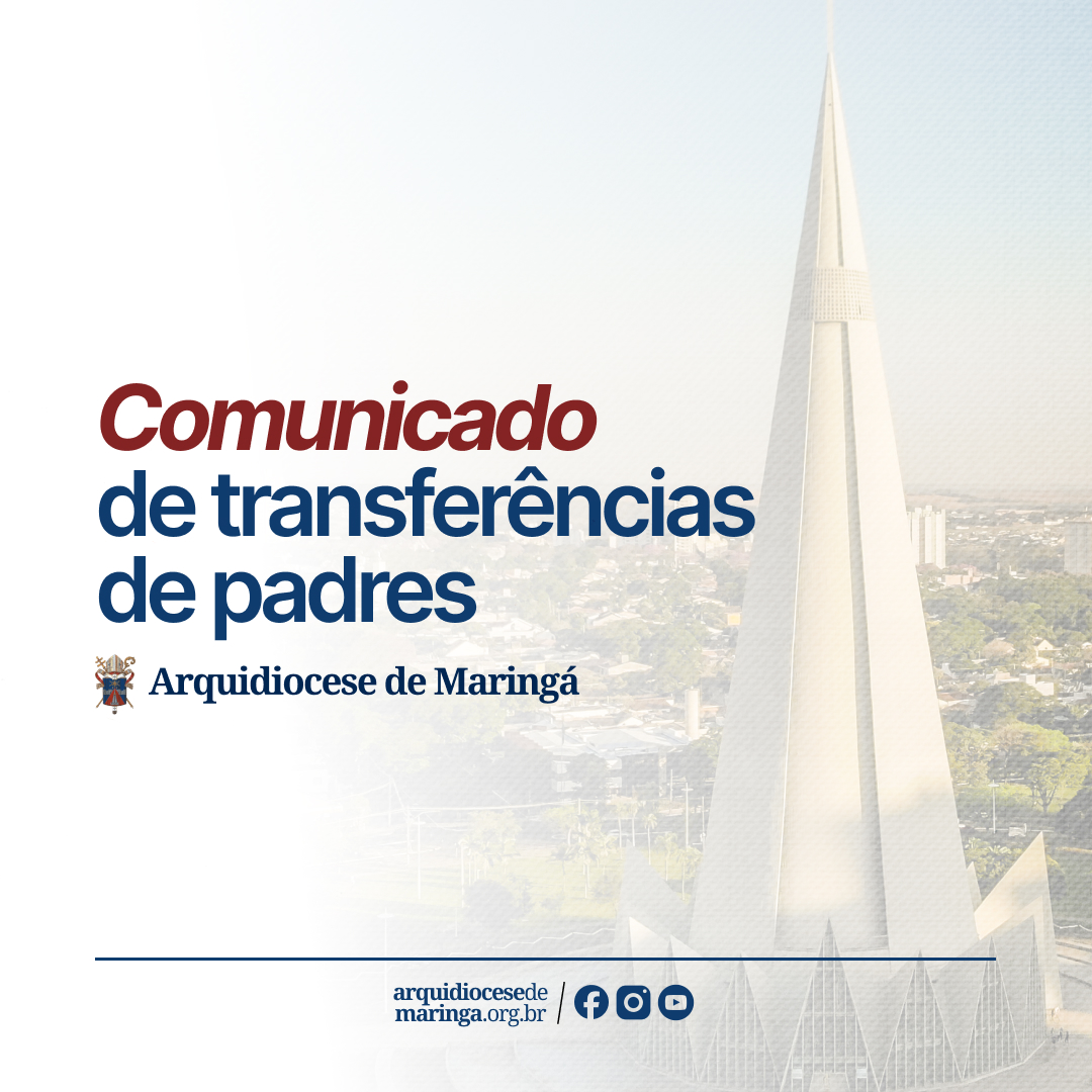 Após ouvir o Conselho Presbiteral, o Arcebispo Metropolitano de Maringá, Dom Frei Severino Clasen, comunica as seguintes transferências: