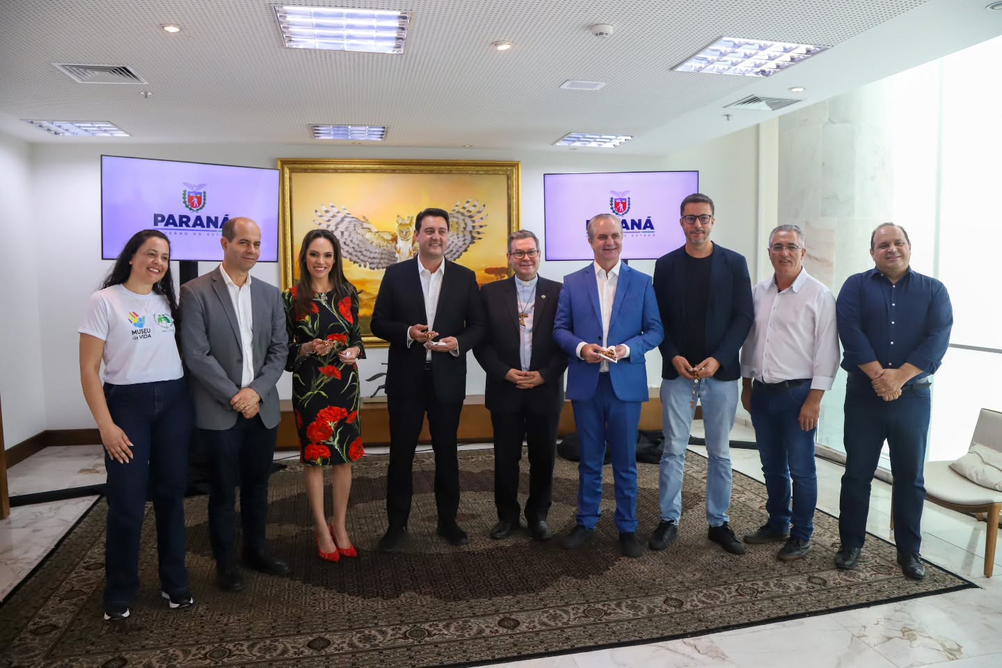 PRESENÇAS – Também participaram do encontro o secretário estadual da Comunicação, Cleber Mata; os deputados estaduais Evandro Araújo e Maria Victoria; o assessor de Comunicação da Arquidiocese de Maringá, Everton Barbosa; a coordenadora do Museu da Vida, Erica dos Santos e o coordenador financeiro da Pastoral da Criança, Silvio Lopes Barbosa.