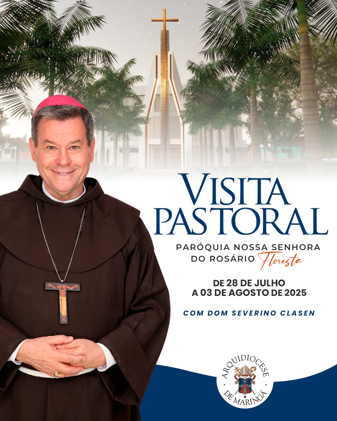 O Arcebispo de Maringá, Dom Frei Severino Clasen, OFM, realizará Visita Pastoral à Paróquia Nossa Senhora do Rosário, em Floresta, entre 28 de julho e 3 de agosto de 2025.