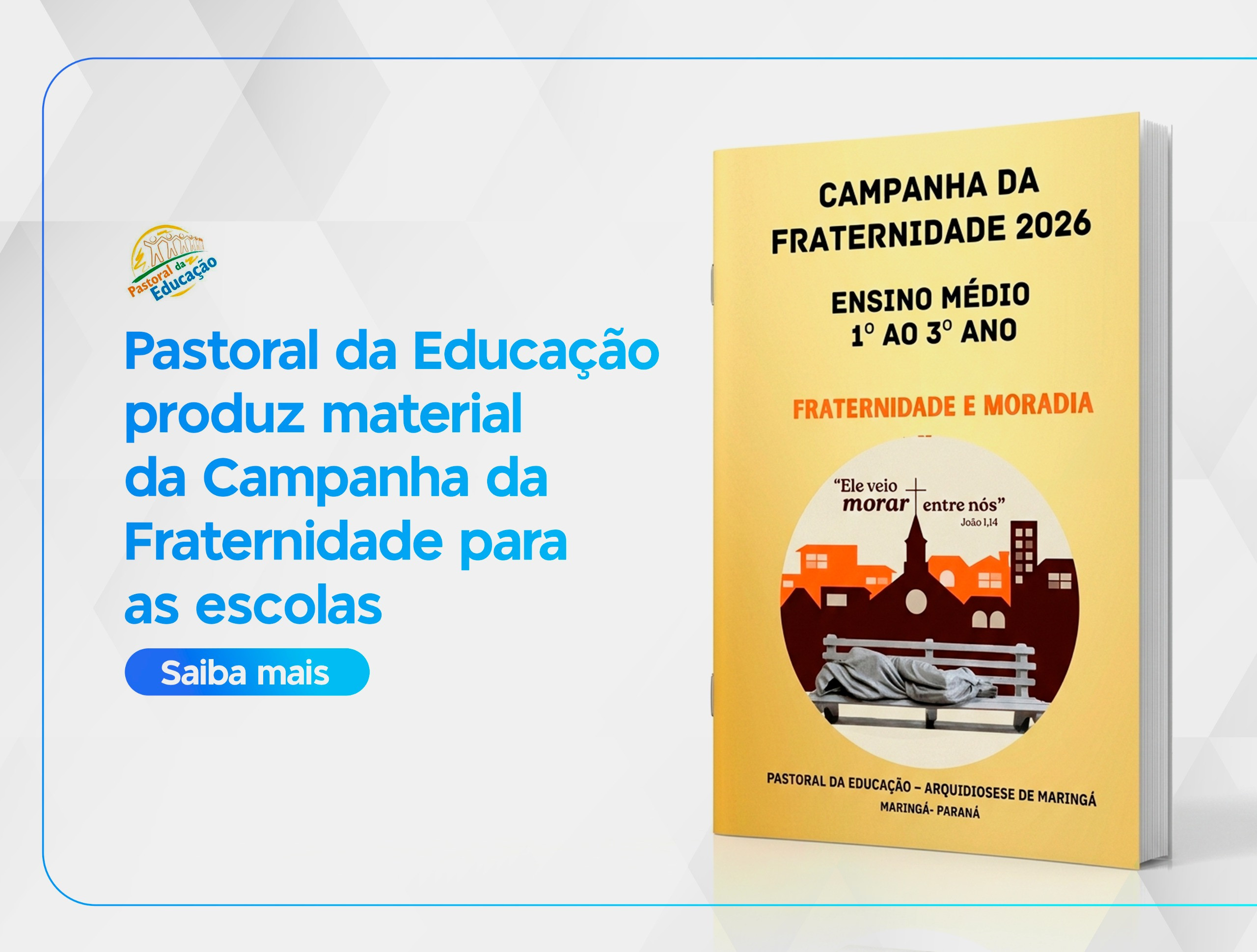 A Pastoral da Educação da Arquidiocese de Maringá já disponibiliza às escolas o subsídio pedagógico para o trabalho da Campanha da Fraternidade 2026 (CF 2026), que tem como tema “Fraternidade e Moradia” e lema “Ele veio morar entre nós” (Jo 1,14).