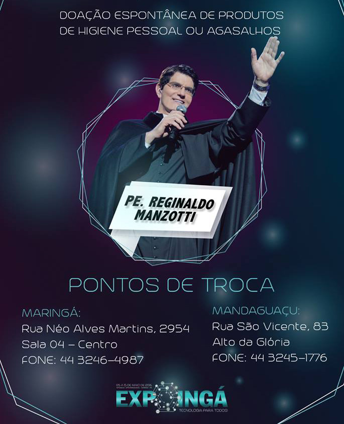 Os ingressos para o dia 10 de maio na Expoingá já podem ser trocados na rádio Colméia, emissora da Arquidiocese de Maringá, nos estúdios em Maringá e Mandaguaçu. Cada ingresso pode ser trocado por um item de higiene pessoal ou agasalho. Toda a arrecadação será repassada a entidades ligadas à arquidiocese.