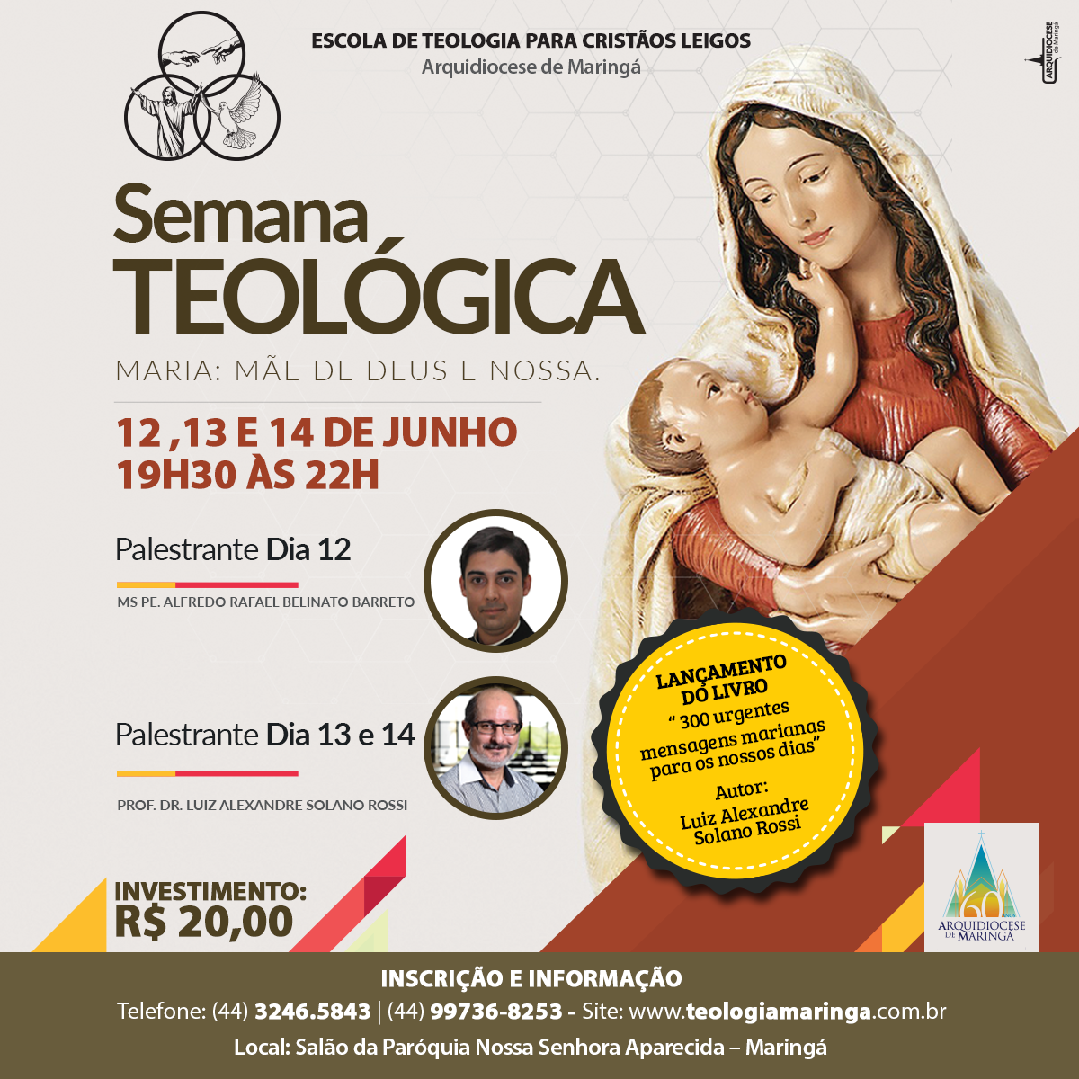 A Escola de Teologia para Cristãos Leigos da Arquidiocese de Maringá promoverá a Semana Teológica 2017 de 12 a 14 de junho com o tema “Maria: mãe de Deus e nossa”.