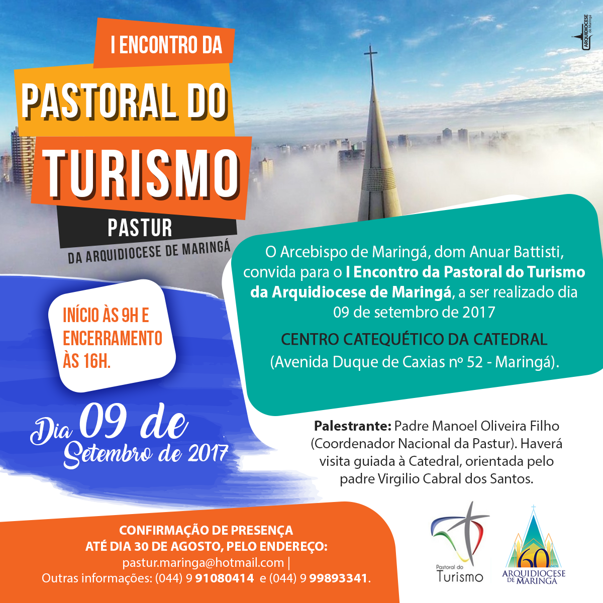 O Arcebispo de Maringá, dom Anuar Battisti, convida para o I Encontro da Pastoral do Turismo da Arquidiocese de Maringá, a ser realizado dia 09 de setembro de 2017 no Centro Catequético da Catedral (Avenida Duque de Caxias nº 52 - Maringá).