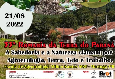 A Escola Milton Santos de Agroecologia, em Maringá, receberá a 33ª Romaria da Terra do Paraná, no próximo domingo, 21 de agosto. O evento é promovido pela Comissão Pastoral da Terra (CPT) do Paraná - organismo autônomo, vinculado à Igreja Católica. Com a temática “A sabedoria e a natureza clamam por...