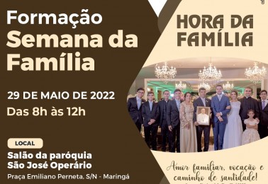 A Pastoral Familiar da Arquidiocese de Maringá irá promover formação sobre a temática da Semana Nacional da Família de 2022 - “Amor familiar, vocação e caminho de santidade” - domingo, dia 29 de maio, no salão da paróquia São José Operário.O dia de formação será destinado aos agentes, lideranças de ...