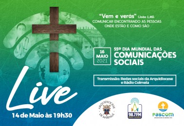 A Pastoral da Comunicação da Arquidiocese de Maringá promoverá no dia 14 de maio uma Live em comemoração ao 55º dia Mundial das Comunicações Sociais. O evento será transmitido dos estúdios da rádio Colmeia FM (98,7) e redes sociais da Arquidiocese de Maringá, a partir das 19h30. Todos os anos o Papa...