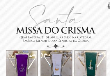 A Santa Missa do Crisma na Arquidiocese de Maringá será celebrada na próxima quarta-feira, 21 de abril, às 9h30 na Catedral Metropolitana Basílica Menor Nossa Senhora da Glória. A celebração, também conhecida como Missa dos Santos Óleos, será presidida pelo Arcebispo de Maringá, Dom Frei Severi...