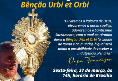 “Eis que estou convosco todos os dias” (Mt 28, 20) De forma extraordinária, o Papa Francisco dará a benção Urbi et Orbi (à cidade [de Roma] e ao mundo), às 14h, horário de Brasília, nessa sexta-feira (27). A benção será dada na praça São Pedro, vazia. No Brasil, haverá transmissão ao vivo pelas TVs ...