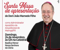 O Administrador Apostólico da Arquidiocese de Maringá, Dom João Mamede Filho, presidirá Santa Missa na Catedral Basílica Menor Nossa Senhora da Glória, no próximo domingo, 24 de novembro, às 12h. Será a primeira celebração como Administrador Apostólico, depois da nomeação feita pelo Papa Francisco, ...